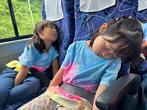楽しかったキャンプもいよいよおしまい。 閉会礼拝をし、東山荘の方々に感謝の気持ちを込めて「ありがとうございました」としっかりお礼のご挨拶をしました。 大型バスに乗り込み、帰りの道中は心地よい疲れに包まれてぐっすり眠る子がほとんどでした。目が覚めると、もう白山通りに到着していました。